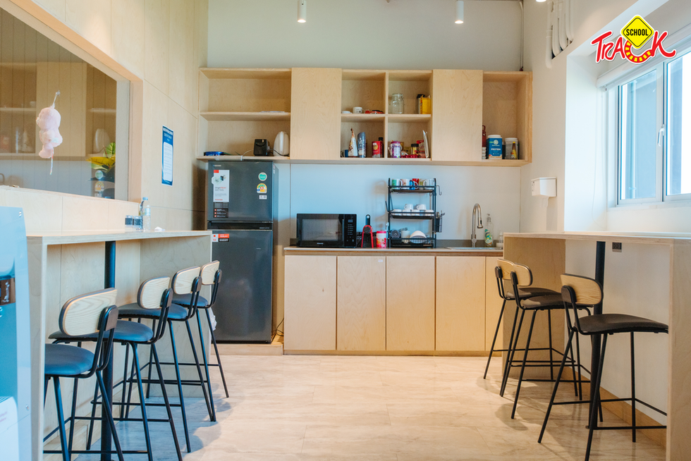 Common Area ถัดจากทางเข้าจะเป็นมุมพักผ่อนของนักเรียน ทั้งเตรียมอาหาร ทานอาหาร และพูดคุยกัน